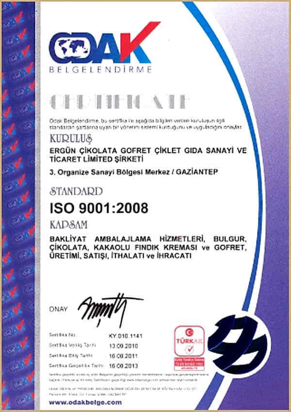 Firmamız Gaziantep 3.Organize Sanayi Bölgesinde 20.980 m2 alanda kurulu olup çikolata , kaplamalı gofret , krem çikolata , dolgulu bar , dolgulu jel , dolgulu yumuşak toffe ve bonbon şekerleme çeşitleri ayrıca bulgur üretmektedir . Sektör 1992 yılında gıda toptancılığı ile başlayarak , 2000 yılında çikolata imalat sektörüne geçiş yapmıştır .Daha sonra 2002 yılında bulgur tesisi üretime başlamış olup bakliyat paketlemesı de yapılmaktadır. Üretimimizin %75 ihracat , %25 piyasaya satış şeklinde gerçekleşmektedir.
